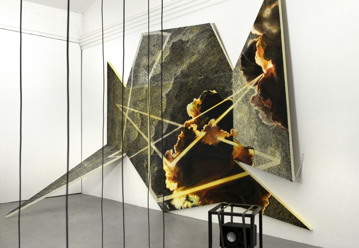 Artem Volokitin und Tetiana Malinovska stellen das Projekt „Chaos und Eidos“ vor. Dieses Projekt erforscht Transformation und Durchdringung. Die Autoren zeigen Fragmente ihrer Werke, die bereits vorhandene Erfahrungen anderer neu interpretieren. Die Werke interagieren, ragen aus der Zweidimensionalität eines Bildes tief in einen Raum hinein, als würden sie ihn zerreißen.