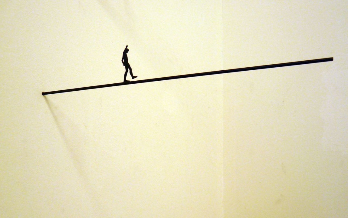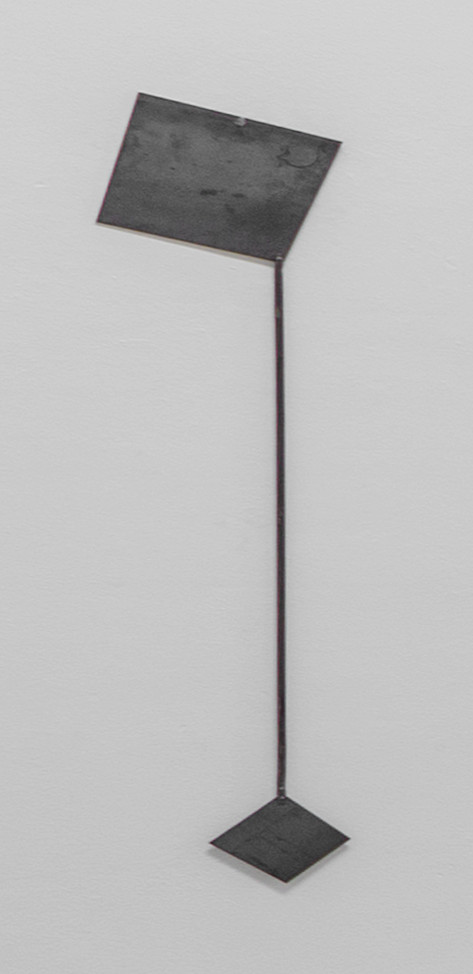 Blaue Fotofliesen-Objekte, je als „Pärchen“ aufgespießt auf silberfarbene(n) Metall-Wand-halter(n)