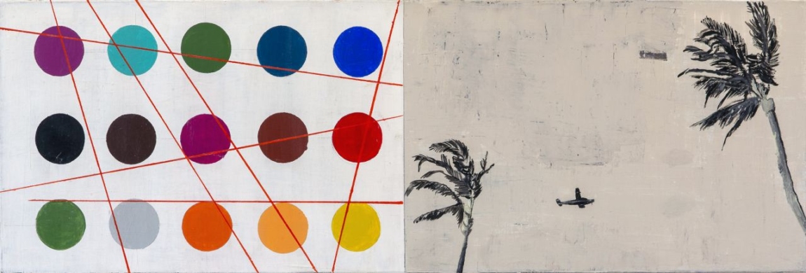 Bäume, Häuser, Menschen oder Tiere werden aus ihren Kontexten gelöst und in malerisch abstrakte Gegebenheiten gesetzt, schweben dort frei und sind doch neu verortet. Eine geballte Farbigkeit steht dabei oft im Kontrast zum Schwarz oder Grau. Auf diesen vielschichtigen Maluntergründen eröffnet die Bescheidenheit der grafischen Elemente neue Sehebenen. Die Gemälde von Ulrike Hogrebe sind zunächst rätselhaft, irritierend und genau dadurch so fesselnd. Das Thema der Malerin sind Landschaften. Doch sie überführt das klassische Genre in zeitgemäße, eigenwillige Formulierungen. Sie malt Lebensräume und Lebensträume. Einige Motive kehren in ihren Gemälden immer wieder, wie etwa das Boot, das Haus, das Pferd oder das Flugzeug – tradierte Symbole von Sehnsüchten und Geborgenheitswünschen jeglicher Zivilisationen wie Generationen und gleichzeitig Sinnbilder für die von Menschen gestaltete Welt.