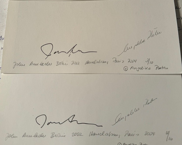 Künstler John Armleder signierte Handabzüge, 2002, Silbergelatine auf Barytpapier, 18 x 24 cm mit umlaufenden weißen Rand.
