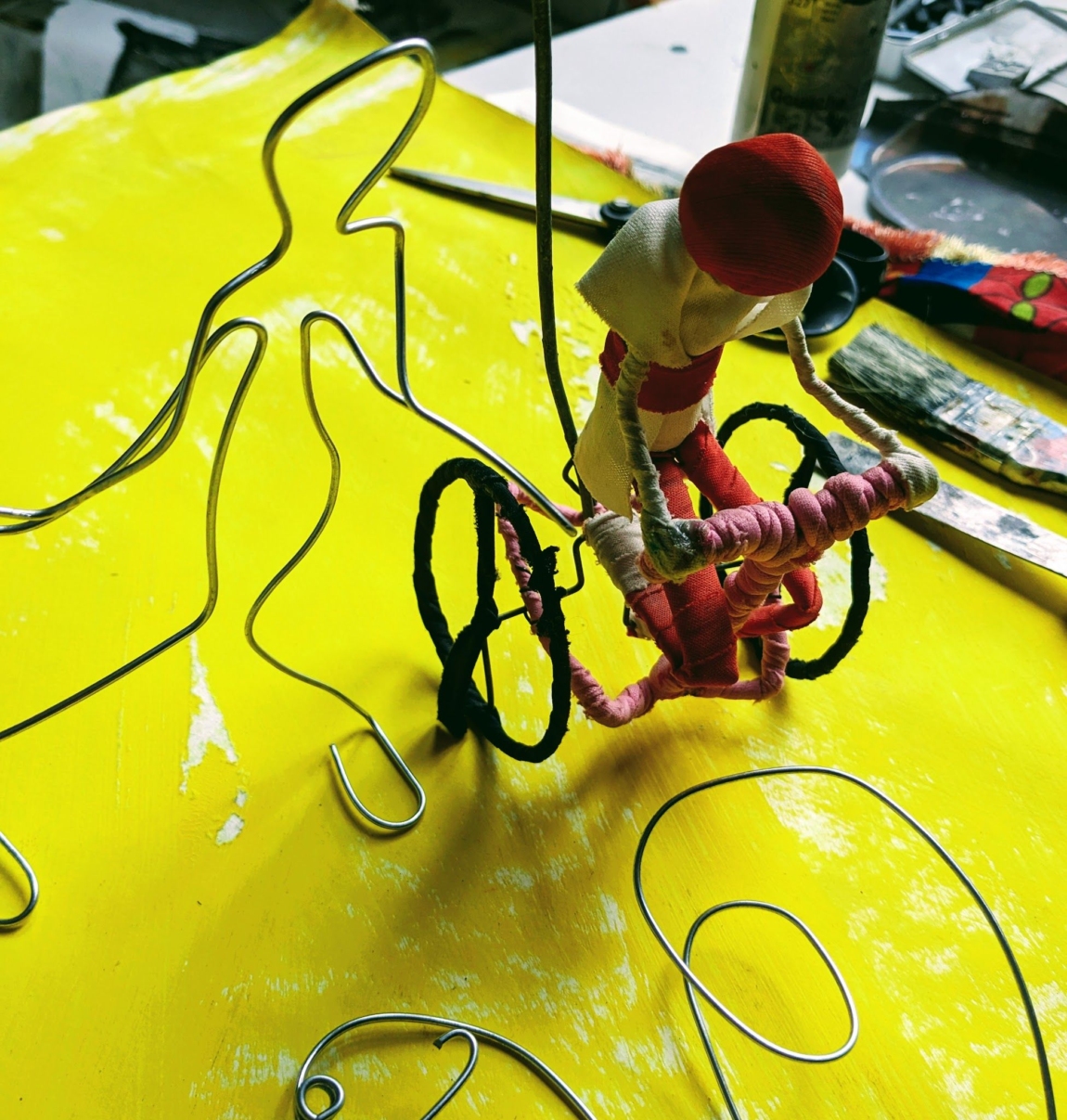 Die Kinder bauen bewegliche oder statische Objekte aus Draht, wie Drahtporträts,